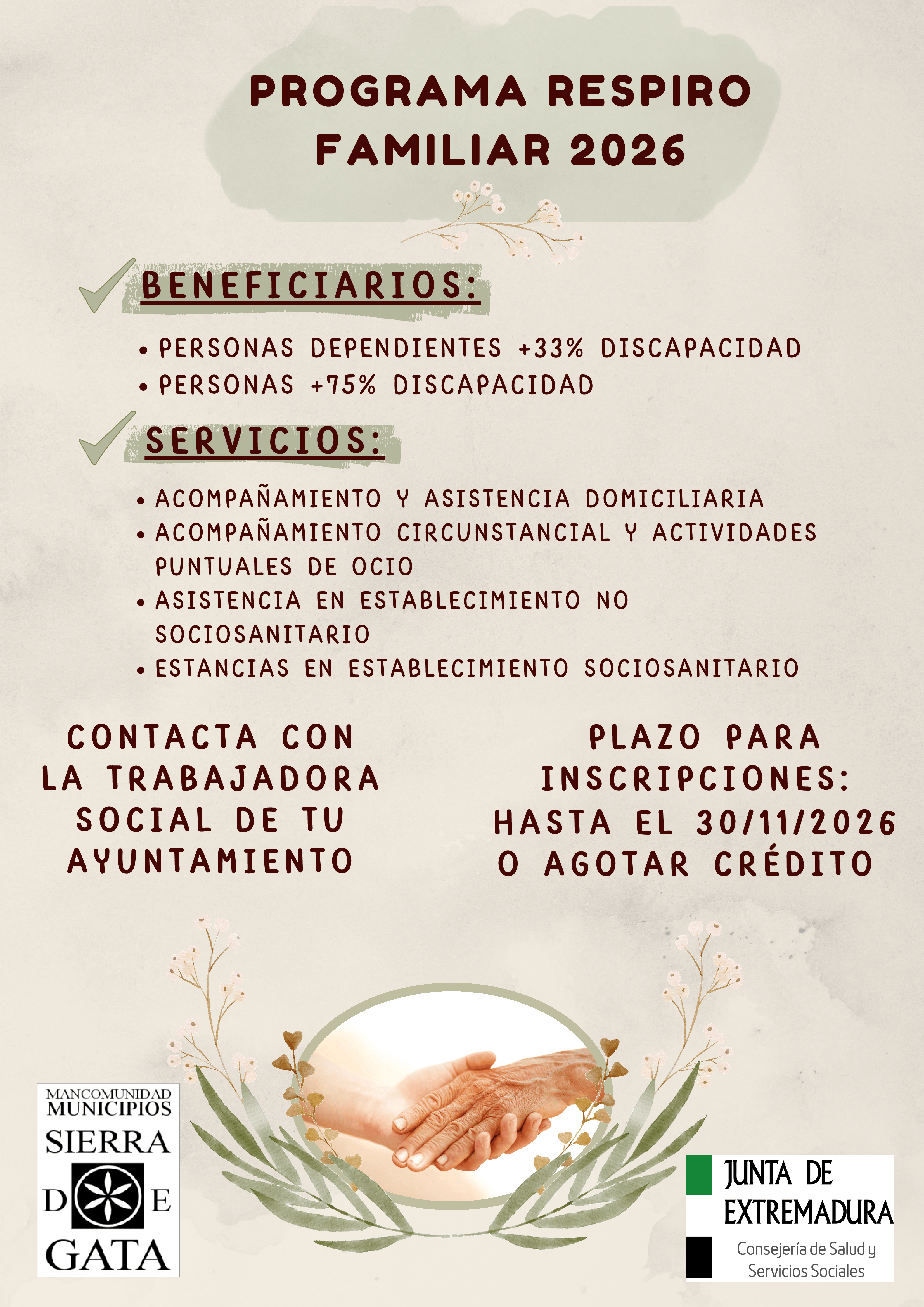 Bases Reguladoras y Convocatoria del Servicio de Respiro Familiar a personas cuidadoras habituales no profesionales 2026.