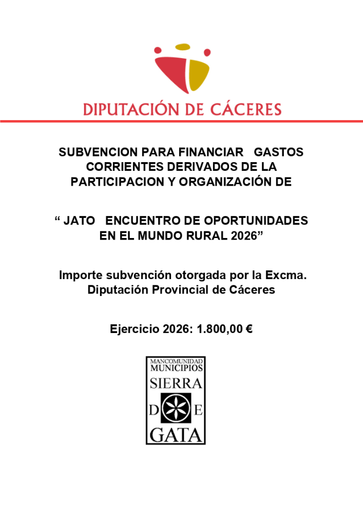 Subvención para financiar gastos corrientes derivados de la participación y organización de "JATO Encuentro de Oportunidades en el Medio Rural 2026" 17 febrero 2026